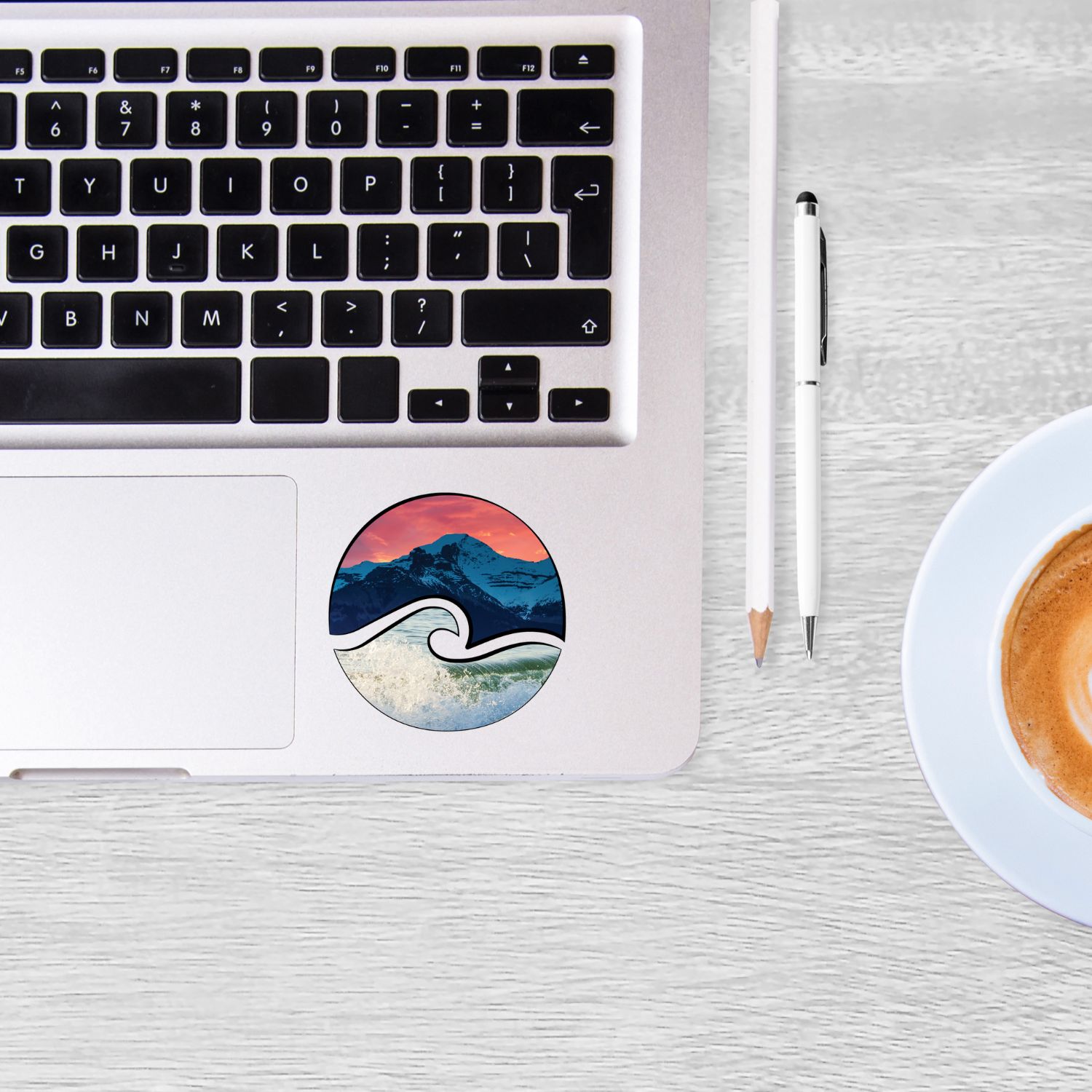 Bring the tranquility of the mountains and the calming energy of the ocean together in one place. This versatile sticker will transport you to your happy place every time you see it.